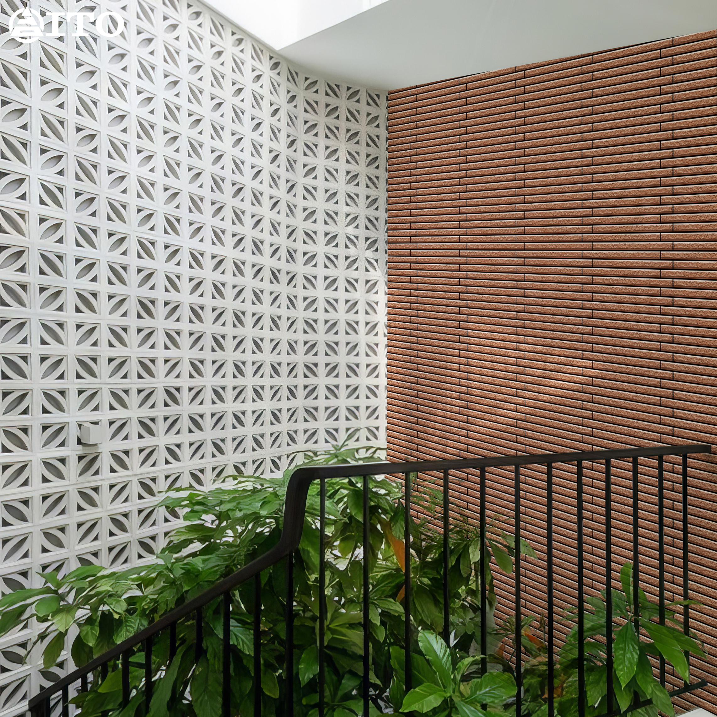 Nhìn giống như một hỗn hợp màu sắc yên tĩnh hòa hợp cùng tự nhiên. Đạt được nhờ sự kết hợp giữa những viên gạch độc đáo.